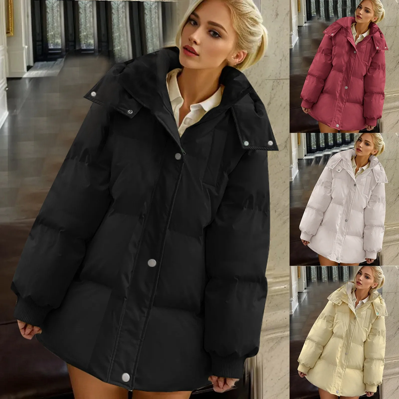 Ladies Winter Mid Length Thickened Cotton Coat Down Jacket Bread Coat Cotton Padded Jacket