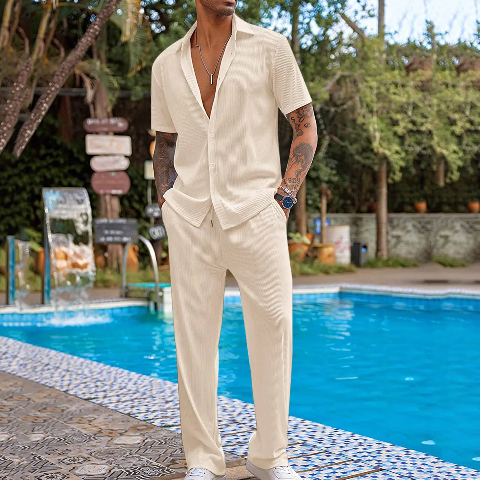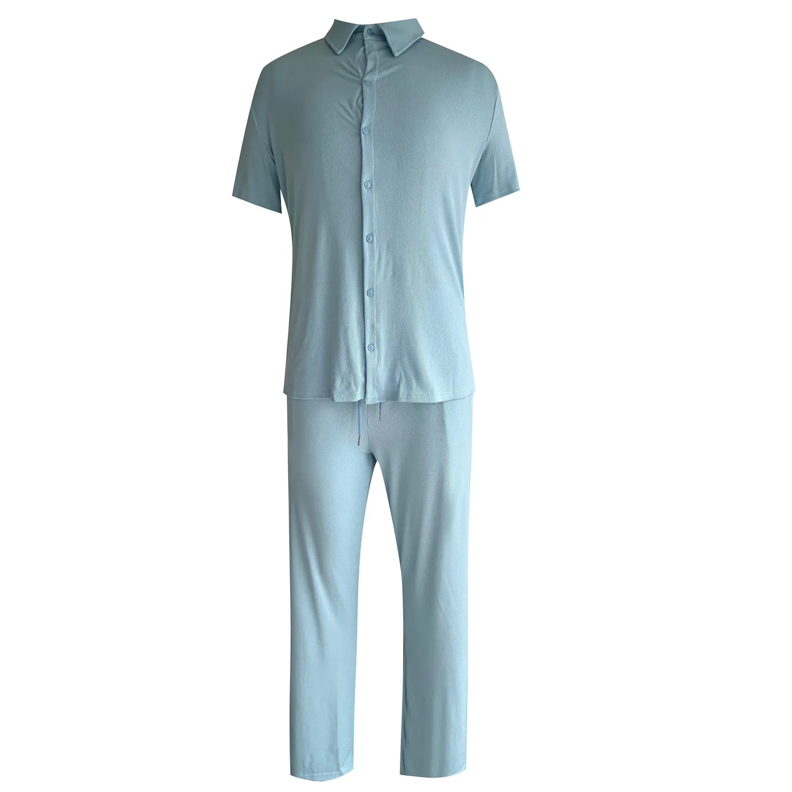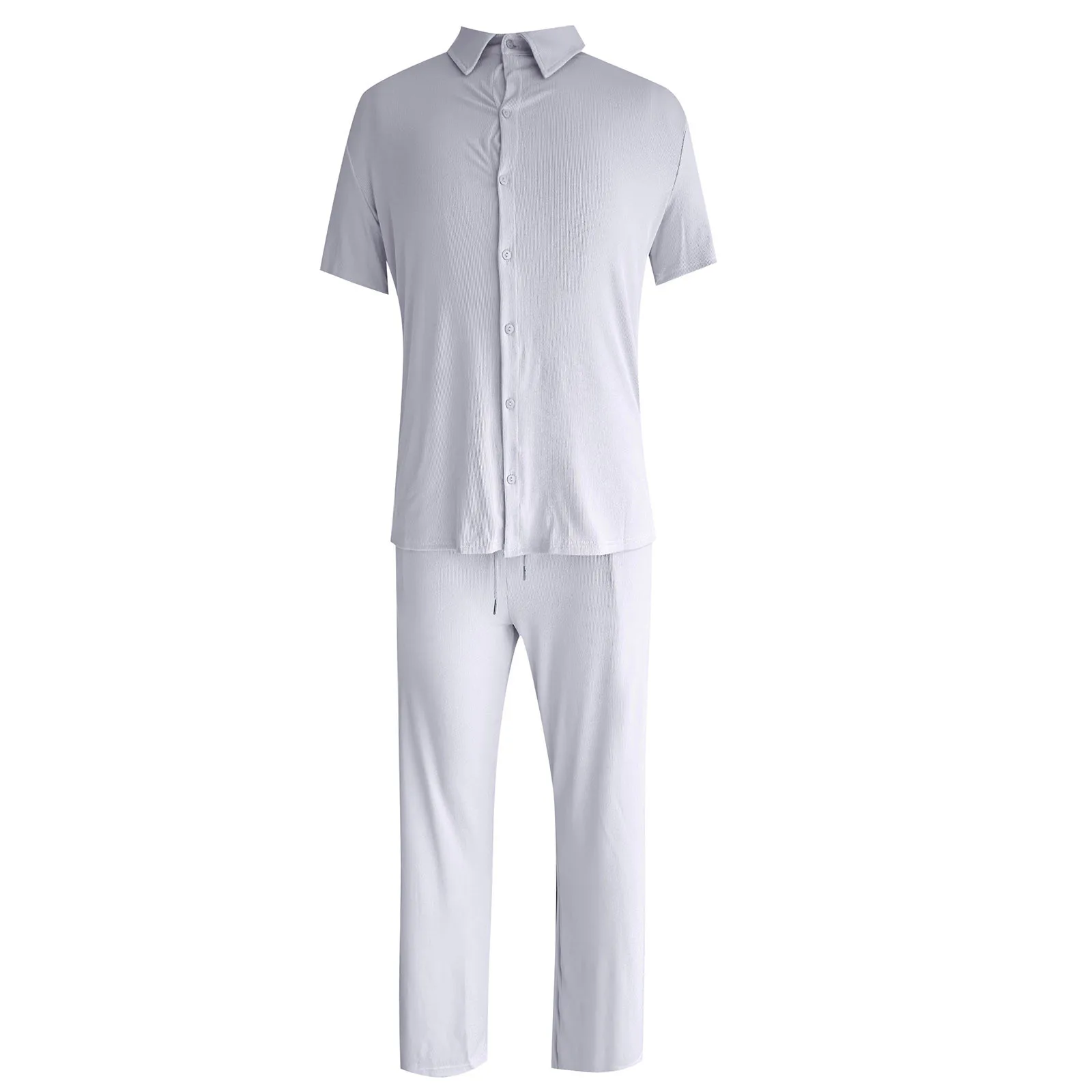 Mens Spring And Autumn Fashion Casual Solid Color Short Sleeve Long Pants Loose Casual Set