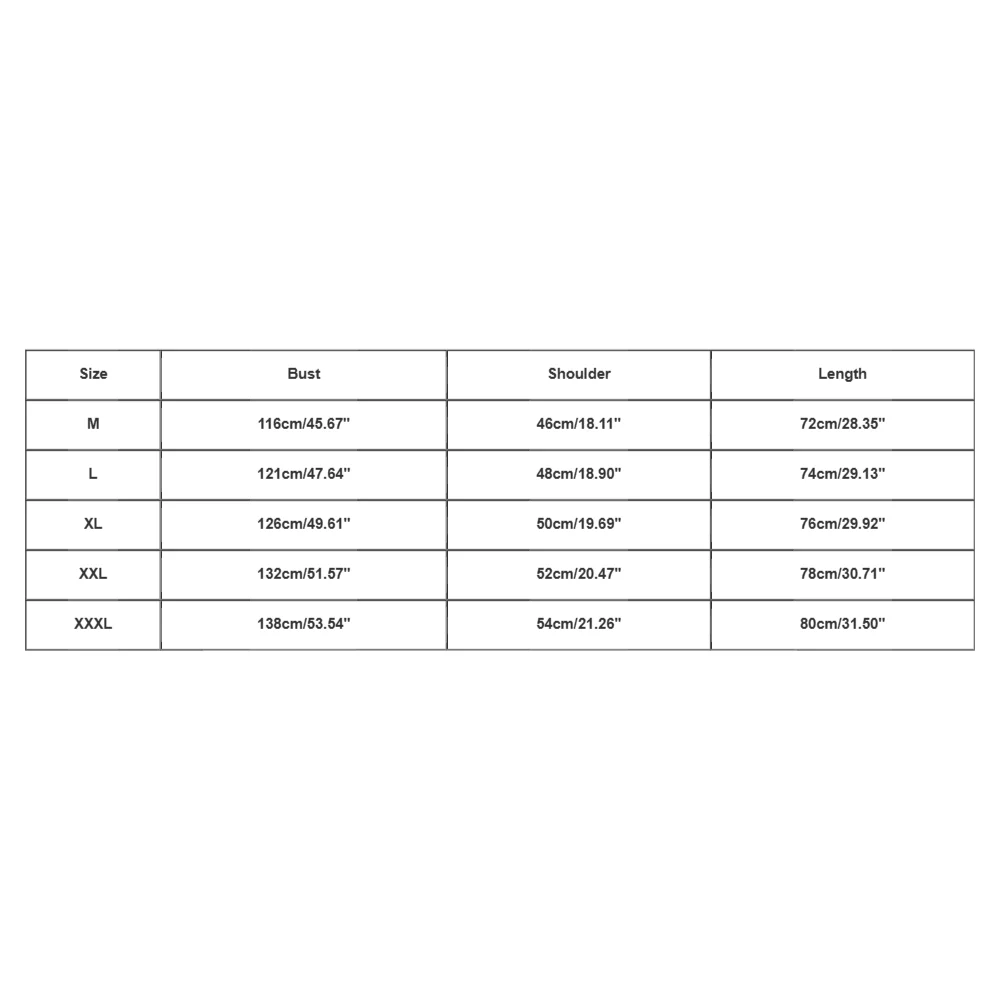 | Size:XXXL | Bust:138cm/53.54'' | Shoulder:54cm/21.26'' | Length:80cm/31.50'' |