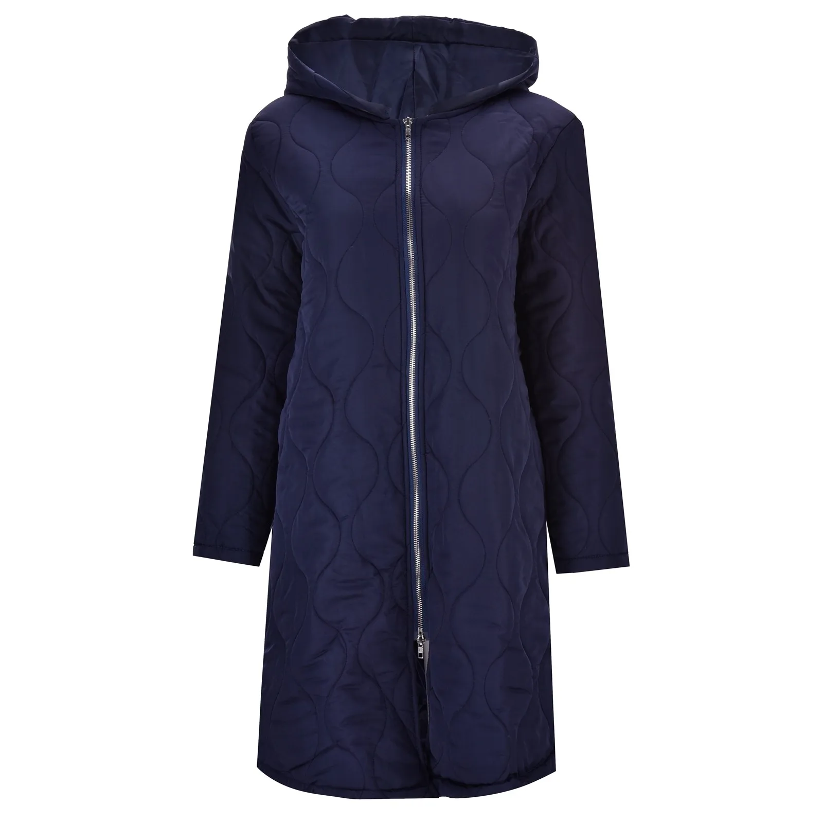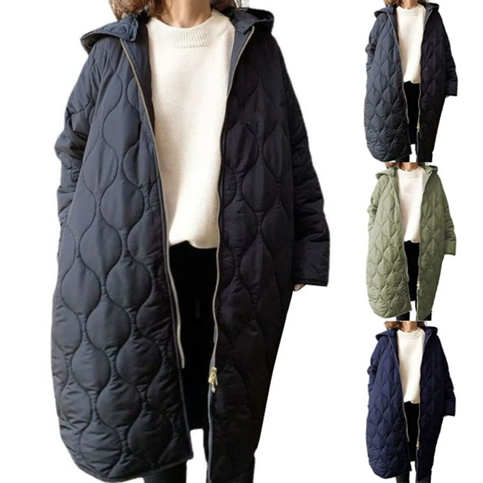 Women's Fashionable And Casual Solid Color Long Hooded Cotton Coat Stylish Outerwear