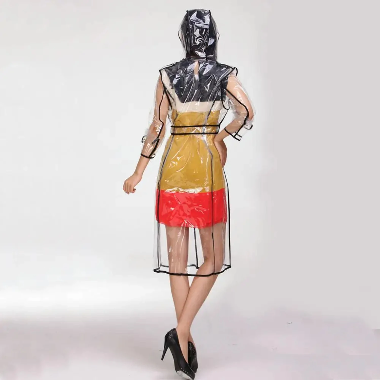 1. Stay dry in style with this fashionable Waterproof Transparent Plastic Clear Long Raincoat for both men and women. Featuring a hood and belt for extra protection, this poncho style rainwear is perfect for outdoor activities like hiking.